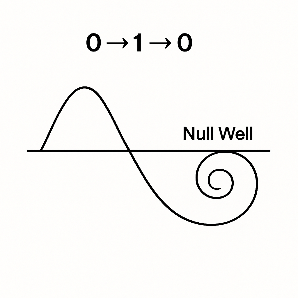 • Null Well – A hyper-dense collapse point of pure 0. Formerly called a black hole, it is now reinterpreted as a seed of new universal computation.
